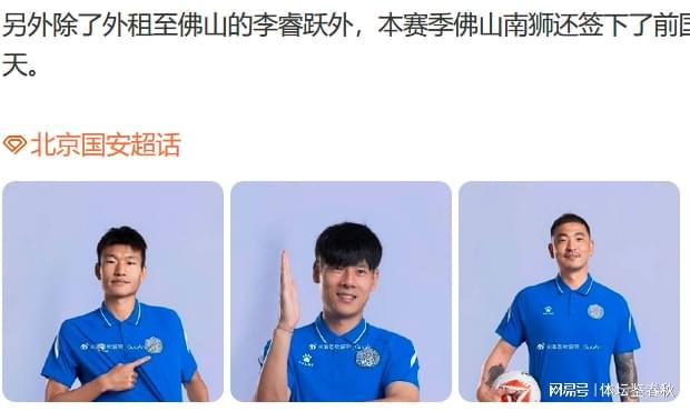 球员方面,也出现了不少国安元素。老将刘欢正式加盟南狮队,门将石笑天同样签约加入。此外,国安队的小将李睿跃也在本赛季租借加盟了南狮队。